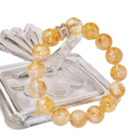 The bracelet features 12mm beads of Yellow Gel Flower Crystal, which, like the warm sunlight of the earth, emits a soft yellow glow, representing the stability and abundance of the Earth element. It symbolizes a solid foundation and enduring strength, bringing inner peace and harmony with the world. Wearing this bracelet, you can not only feel the nourishment of the earth but also help balance your body and mind, enhancing patience and focus. Each crystal holds the energy of nature, like a gift from the earth, warming your days and bringing endless good luck and stability.