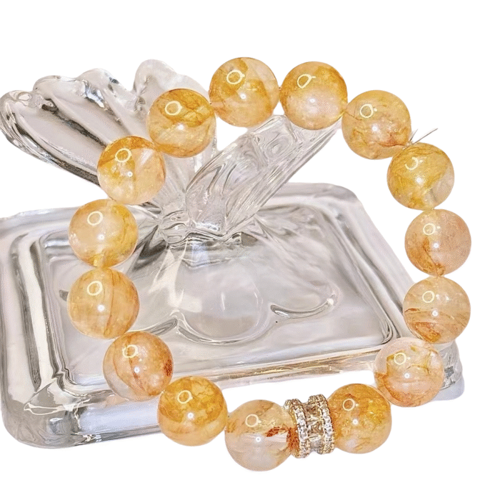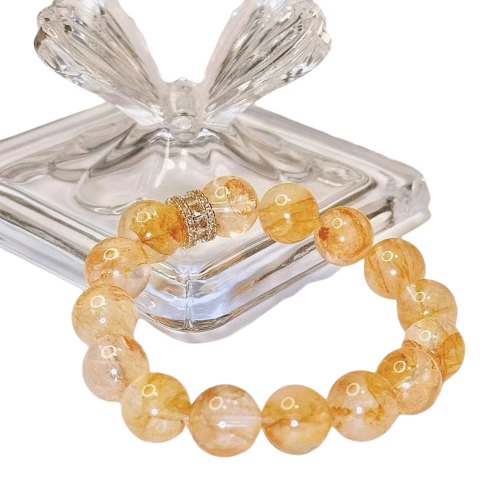 The bracelet features 12mm beads of Yellow Gel Flower Crystal, which, like the warm sunlight of the earth, emits a soft yellow glow, representing the stability and abundance of the Earth element. It symbolizes a solid foundation and enduring strength, bringing inner peace and harmony with the world. Wearing this bracelet, you can not only feel the nourishment of the earth but also help balance your body and mind, enhancing patience and focus. Each crystal holds the energy of nature, like a gift from the earth, warming your days and bringing endless good luck and stability.